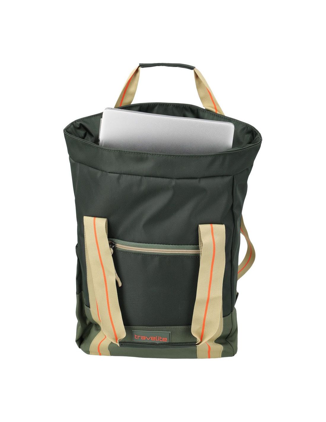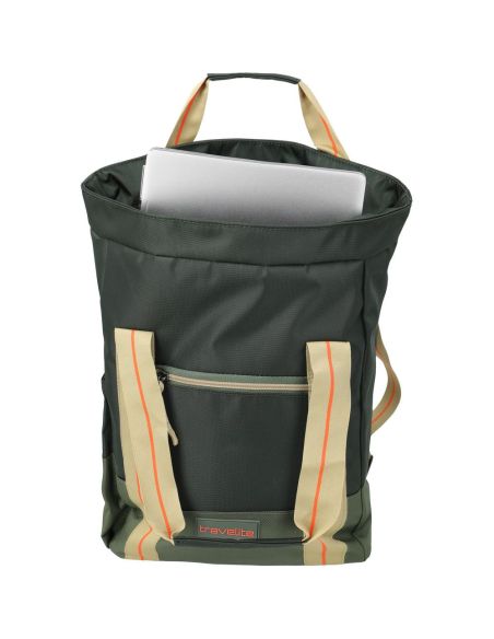 Veelzijdige rugzak van Travelite met sportieve uitstraling, perfect voor dagelijks gebruik of als extra tas tijdens het reizen. Het moderne ontwerp in zwart met groen en opvallende accenten geeft de tas een frisse en eigentijdse look.