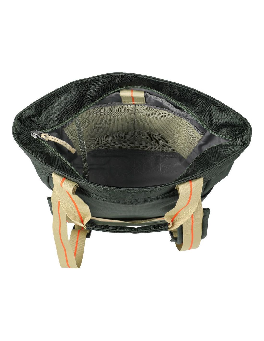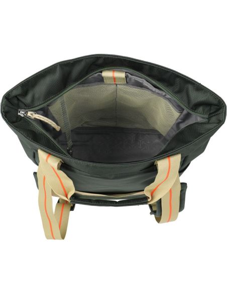 Dankzij de twee schouderbanden en de dubbele handgrepen is de tas zowel als rugzak én als handtas / Tote Bag te dragen. De tas is voorzien van een ruim hoofdvak met ritssluiting en een interne organizer, ideaal om belangrijke spullen overzichtelijk op te bergen. In het hoofdvak past ook gemakkelijk een laptop, wat deze tas geschikt maakt voor school, werk of onderweg.
