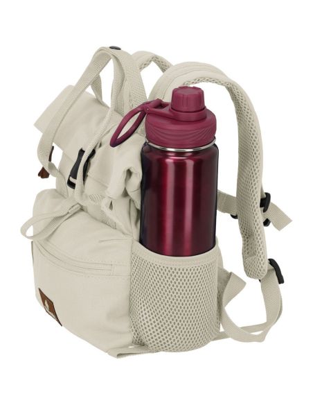 Binnenin is de rugzak uitgerust met een handig laptopvak dat voorzien is van een sluitflap, zodat je laptop veilig en goed beschermd is opgeborgen. Daarnaast is er voldoende ruimte voor boeken, documenten of andere benodigdheden die je dagelijks wilt meenemen. Aan de zijkanten bevinden zich praktische compartimenten die perfect zijn voor een waterfles of een compacte paraplu, zodat je altijd alles bij de hand hebt wat je onderweg nodig kunt hebben.