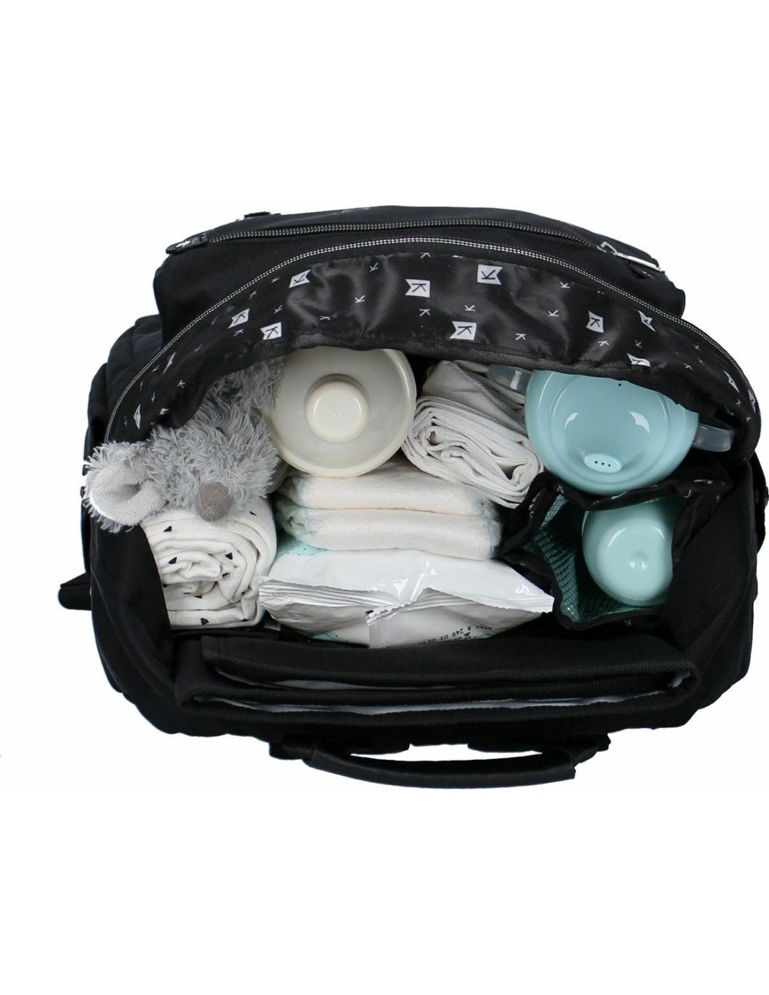 Deze Kidzroom luiertas rugzak is ideaal voor alle jonge ouders die graag vaak op pad gaan, veel spulletjes hebben, niet van een schoudertas houden en regelmatig met hun kindje(s) reizen. De luierrugzak is gemaakt van zwart nylon en heeft een licht glanzende look. Door het gebruik van nylon voelt de rugzak zacht aan en heeft het een luxe uitstraling. Daarnaast combineer je deze Kidzroom luier rugzak super snel en makkelijk met iedere outfit en is hij geschikt voor zowel moeder als vader! Daarbij is de luierrugzak speciaal voor alle jonge ouders super praktisch ingericht. Organiseer alle babyspulletjes in de zowel grote als kleine opbergvakjes. De luier rugzak Kidzroom Casual Chic wordt standaard geleverd met een verschoningsmatje, flessenhouder en luxe dustbag!