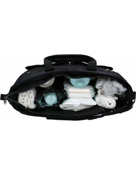Met deze Kidzroom luiertas uit de Casual Chic collectie gaat iedere ouder stijlvol en gemakkelijk met haar kindje op pad! De luiertas is gemaakt van zwart nylon en heeft een licht glanzende look. Door het gebruik van nylon voelt de tas zacht aan en heeft het een luxe uitstraling. Daarnaast combineer je deze verzorgingstas super snel en makkelijk met iedere outfit en kinderwagen! Daarbij is de Kidzroom luiertas speciaal voor alle jonge ouders super praktisch ingericht. Hang de tas eenvoudig aan de kinderwagen en organiseer de babyspulletjes in de zowel grote als kleine opbergvakjes. De luiertas Casual Chic wordt standaard geleverd met een verschoningsmatje, flessenhouder en luxe dustbag!